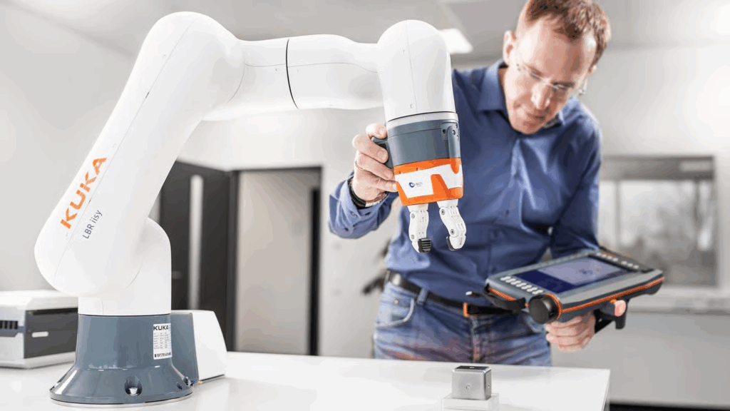 また、操作の容易さ も大きな魅力です。従来は専門的なプログラミング知識が必要でしたが、協働ロボットは直感的な操作で扱いやすく設計されています。アームを直接手で動かして作業を教えるティーチング機能や、タブレット型のインターフェースにより、専門知識がなくても簡単に作業設定が可能です。