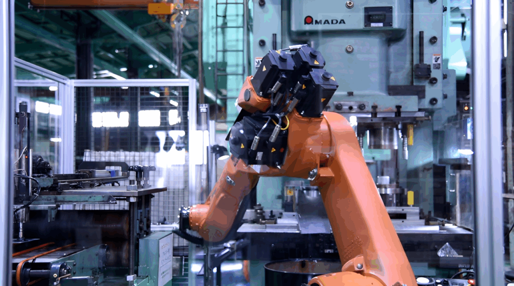 新潟県燕市に拠点を置くあるプレス製造メーカーは、深絞り加工を主力とし、試作から量産まで一貫した体制で高品質・低コストな製品づくりを行っています。金型製作も内製化しており、顧客満足度を高める取り組みを続けてきました。こうした背景のもと、同社は将来の人手不足や生産課題に備え、KUKAのロボット「KUKA KR30-3」を活用した自動化に踏み切りました。